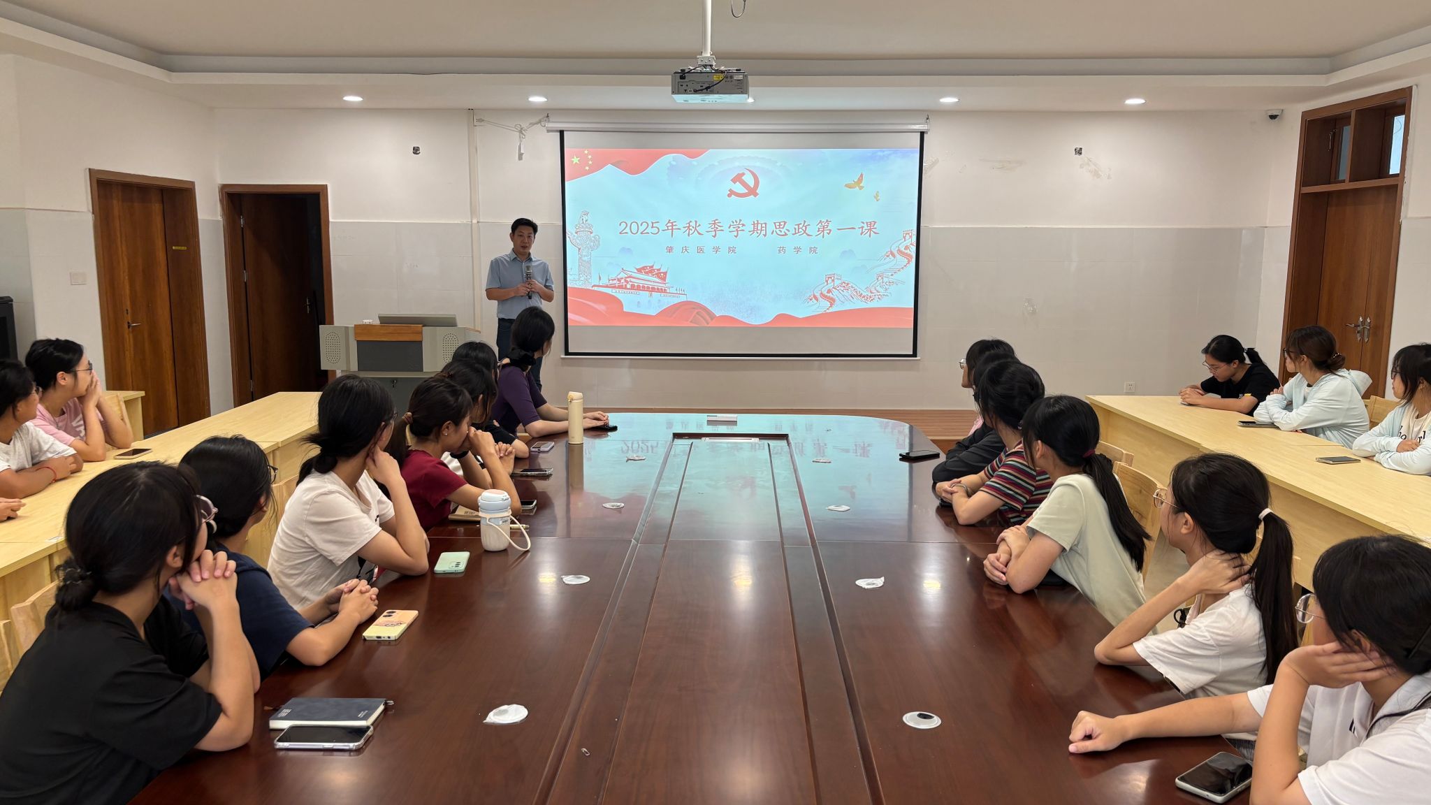 为深入贯彻落实习近平总书记关于教育的重要论述和党的二十大精神,全面落实立德树人根本任务,根据教育部《高等学校课程思政建设指导纲要》和学校党委关于加强思想政治教育工作的相关要求,药学院精心组织了2025年秋季学期思政第一课。此次课程旨在将思想政治教育贯穿于教育教学全过程,引导学生树立正确的世界观、人生观和价值观,培养具有坚定理想信念、高尚道德情操和扎实专业素养的医药人才。课程分上下两部分,第一部分安排在2025年9月26日下午新区校区,由院长汪海涛教授为二年级新生代表授课,第二部分安排在2025年9月28日下午鼎湖校区,由挂点学校党委委员,药学院党支部邢子伟书记授课。